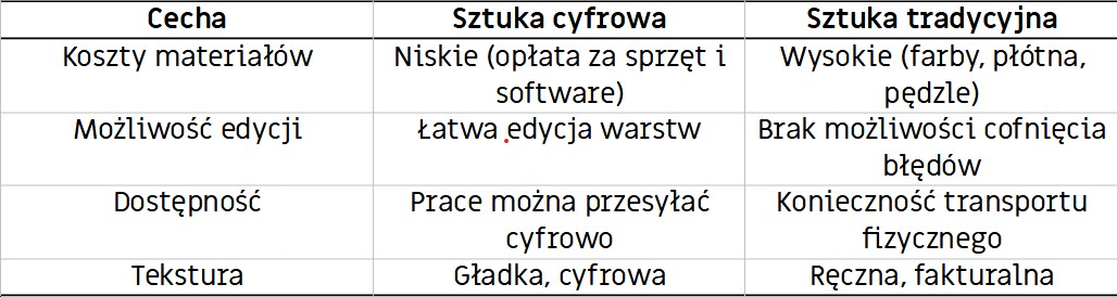 Porównanie sztuki cyfrowej i tradycyjne